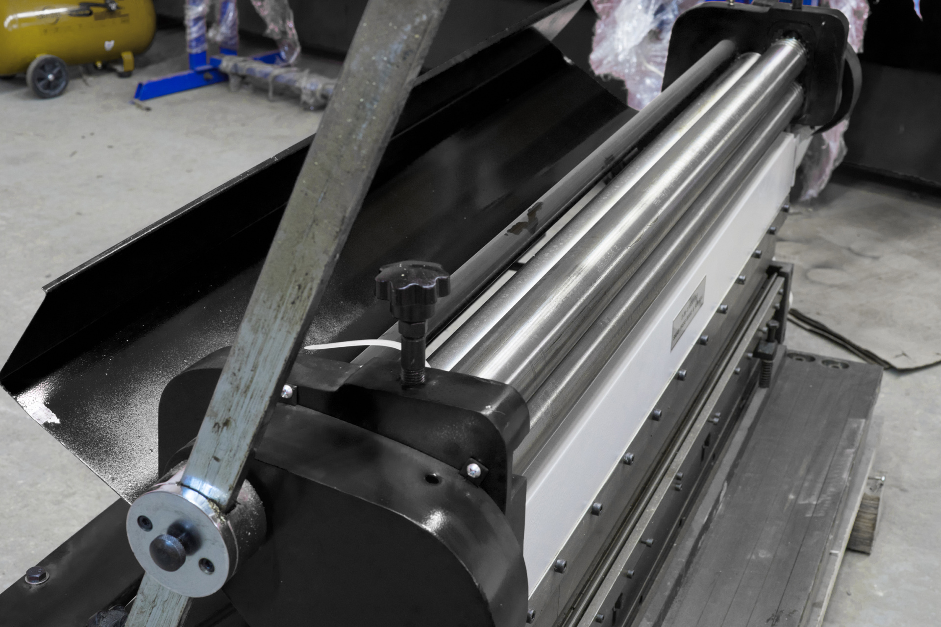 На станке установлен откидной защитный кожух для предотвращения попадания в вальцы посторонних предметов во время выполнения другой операции. Для снижения усилия оператора во время работы станок оснащен удобными рукоятями большой длины с противоскользящими наконечниками.