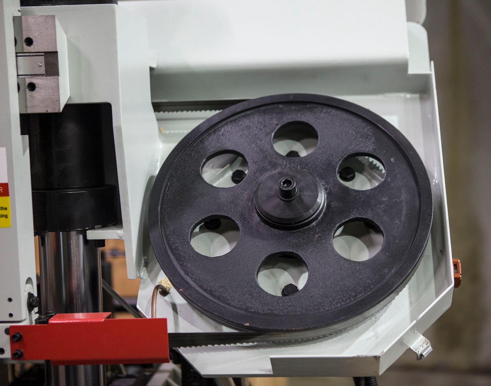 Предохранительные концевики на кожухе маховика, оберегающие станок от поломок в случае если лента повреждена Привод - гибрид (зубчатый привод + клиноременная передача) (фото №1) |