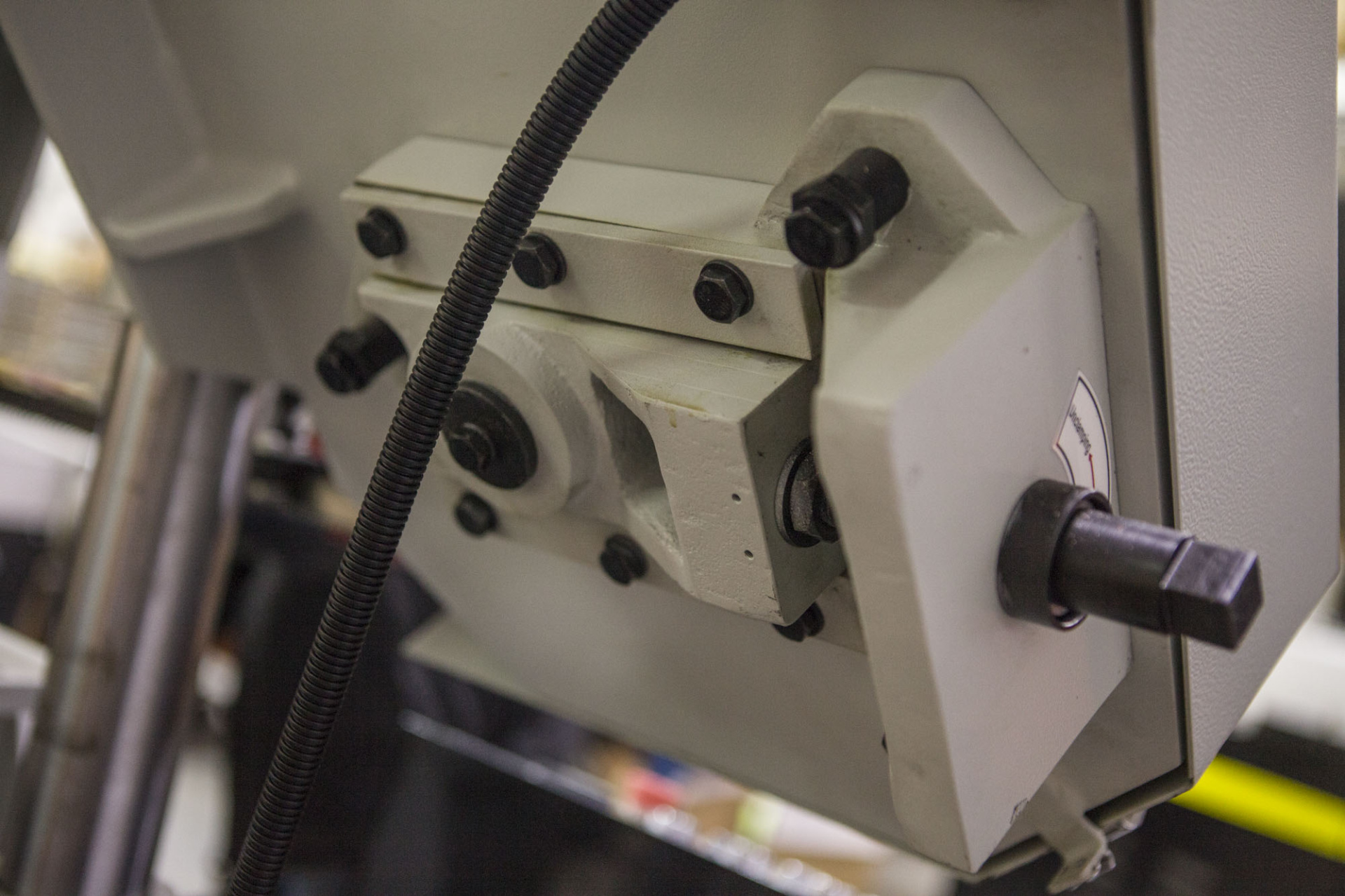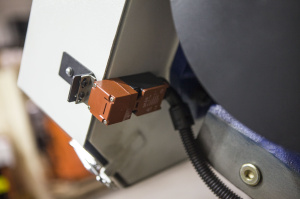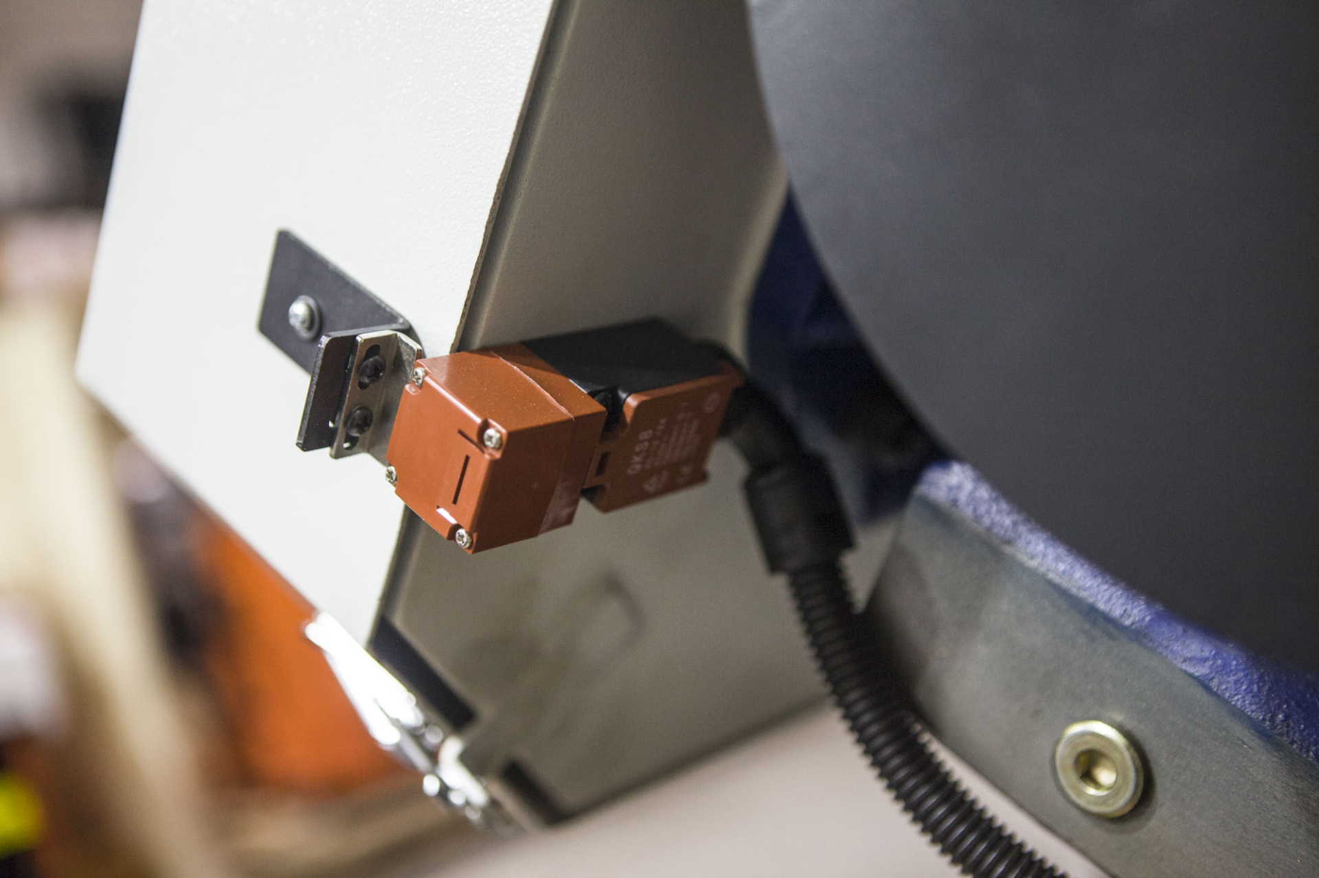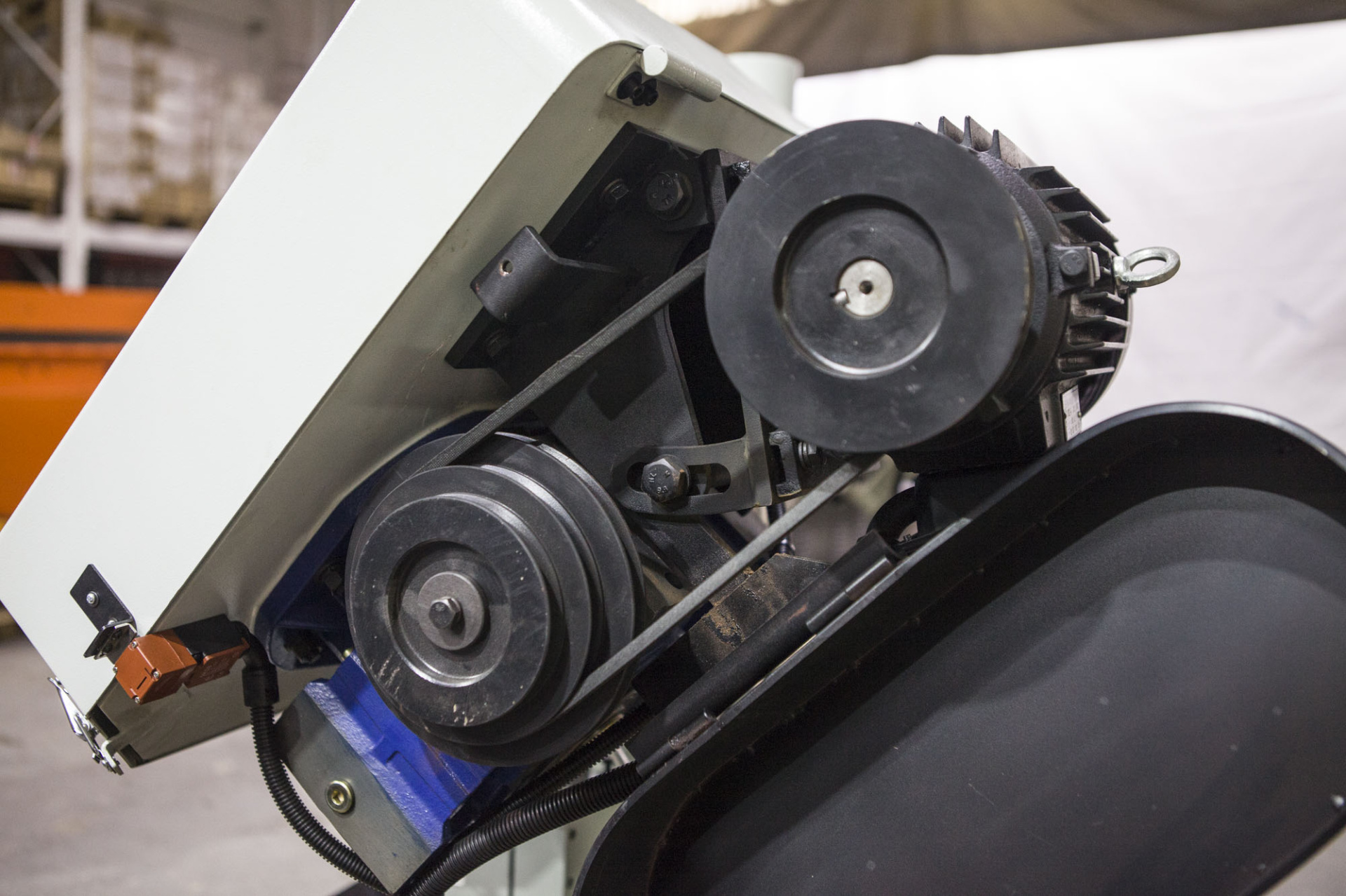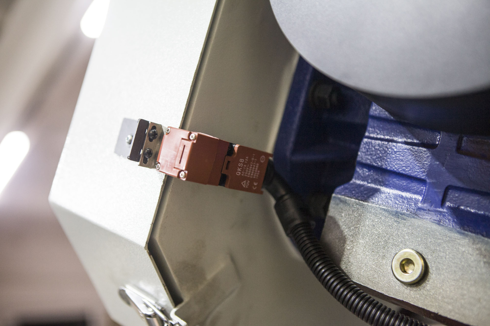 Предохранительный концевик на кожухе маховика, оберегающий станок от поломок в случае если лента повреждена |
