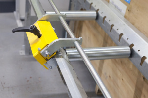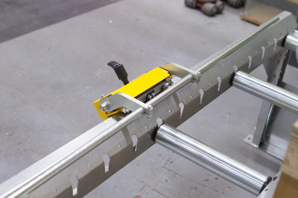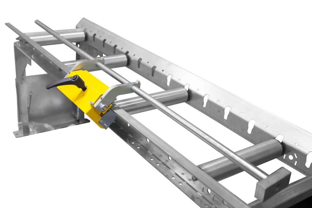 Устанавливается на рольганг, для фиксации заготовки на нужную длину перед резкой.