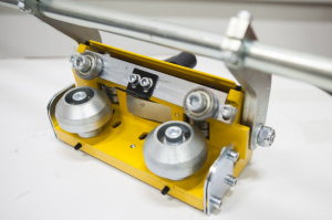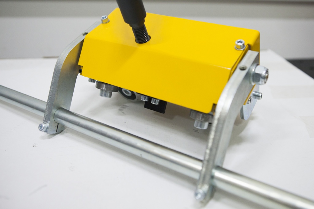 Упор представляет из себя роликовый корпус, направляющий стержень, рукоятка, 2ух метровая мерная линейка с клеевым покрытием.