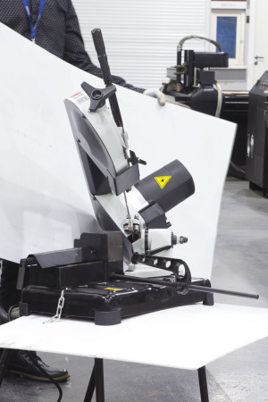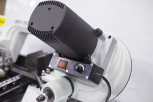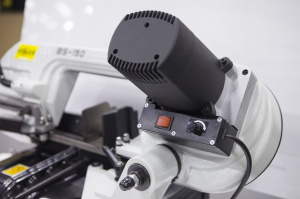 - Движение ленты осуществляется через мотор-редуктор с плавной регулировкой скорости резания, в диапазоне 66-85 м/мин, для различных материалов.