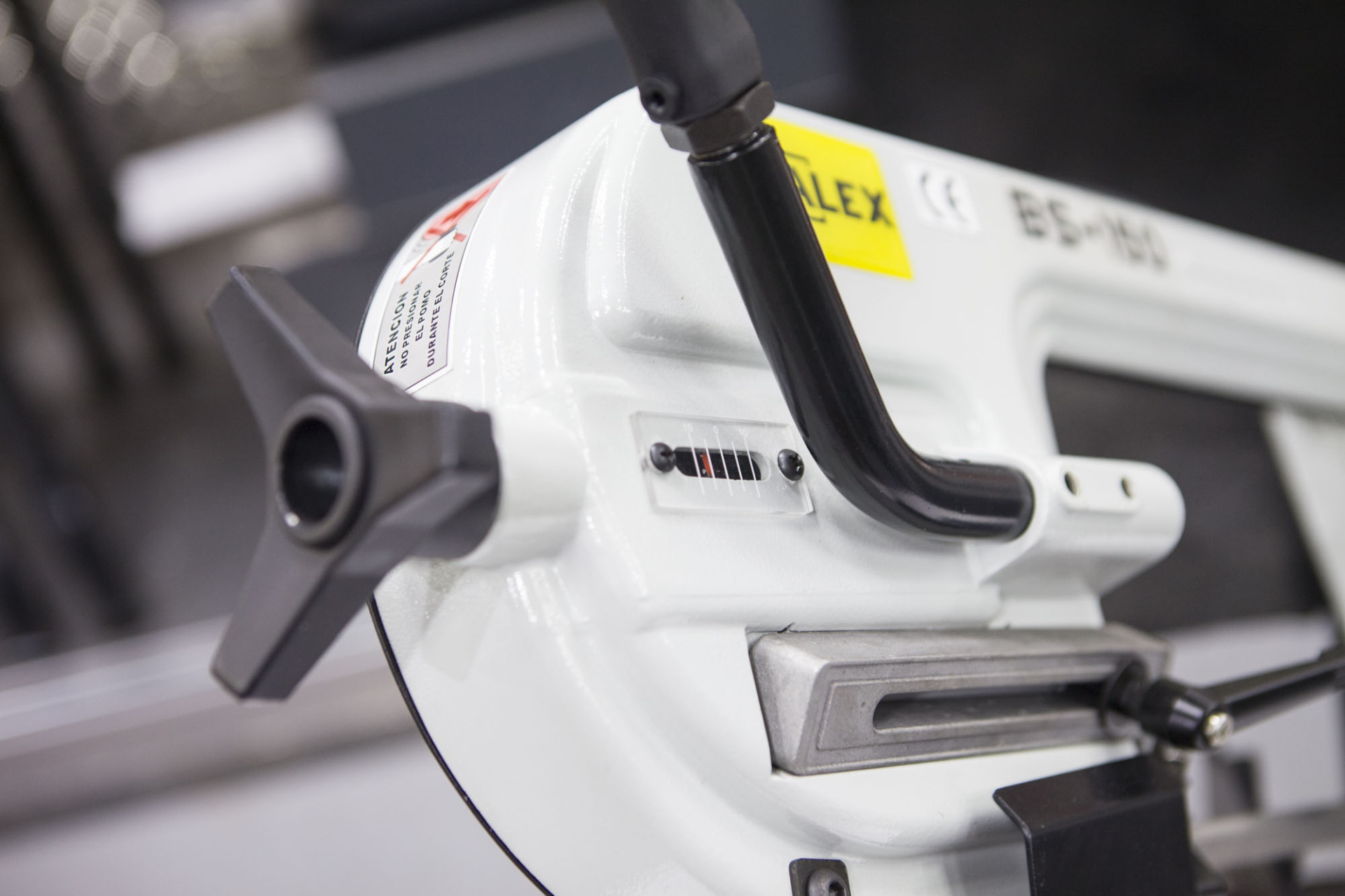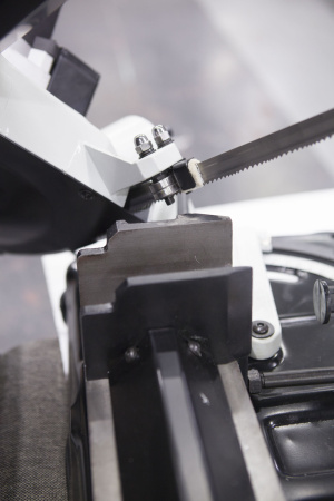 Ручное натяжение полотна. Маховик затягивается вручную, достигая правильное натяжение ленточной пилы! |