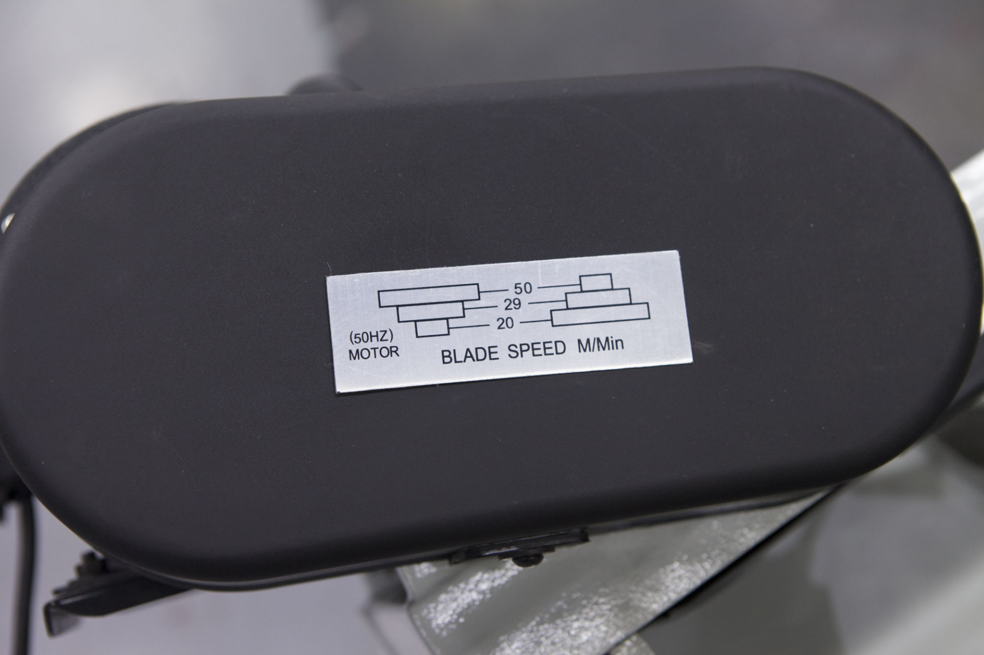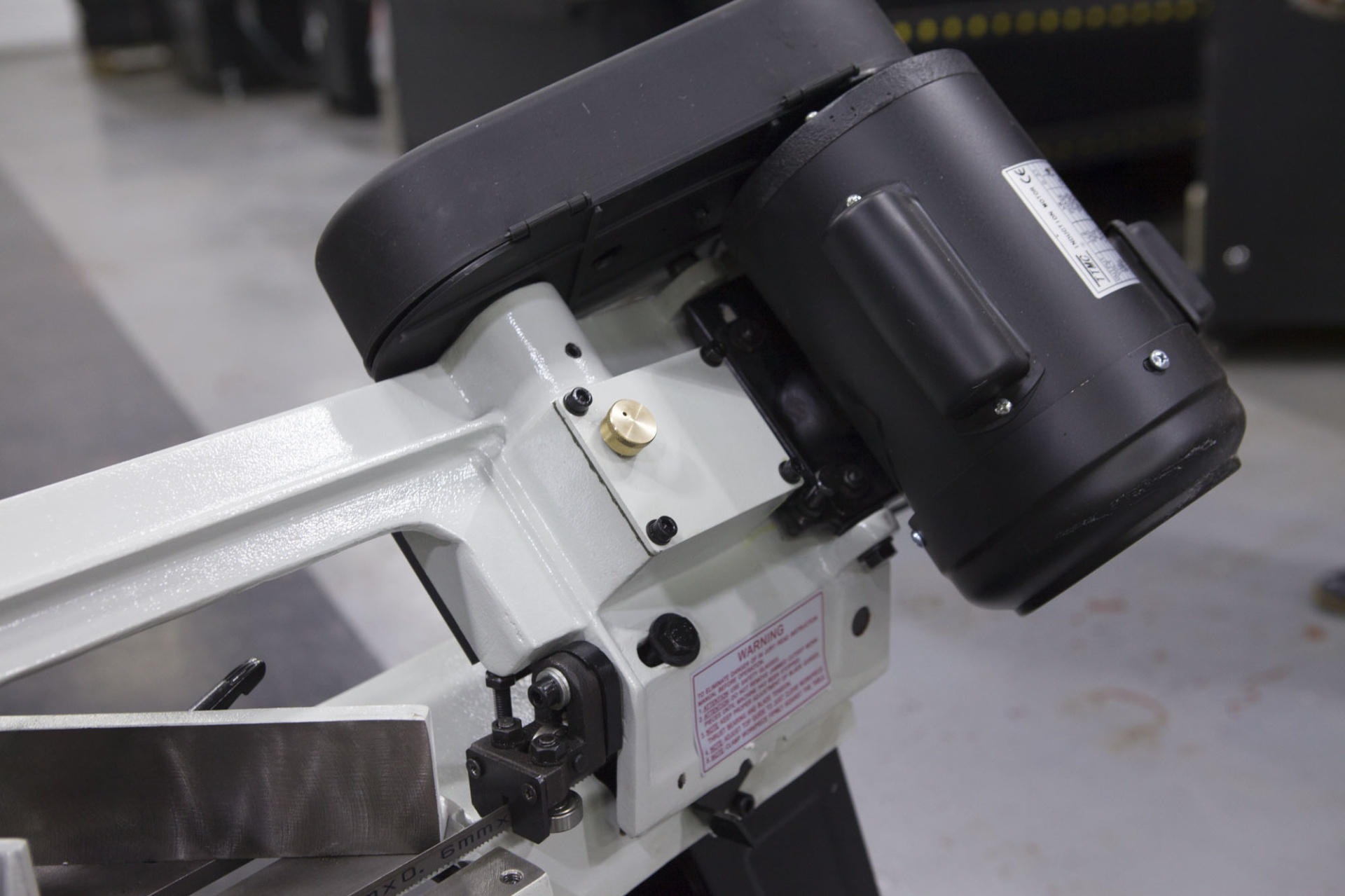 Станок оснащен ременной передачей, поворотными тисками с углом наклона 45-90 градусов, устойчивой конструкцией с транспортировочными колесами, ограничителем длины реза, регулировкой натяжения пильного полотна, дополнительным столом при резке плиты в вертикальном положении рамы.