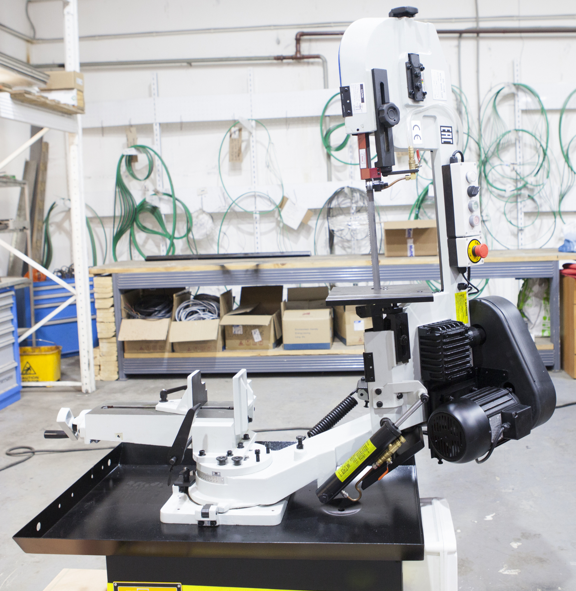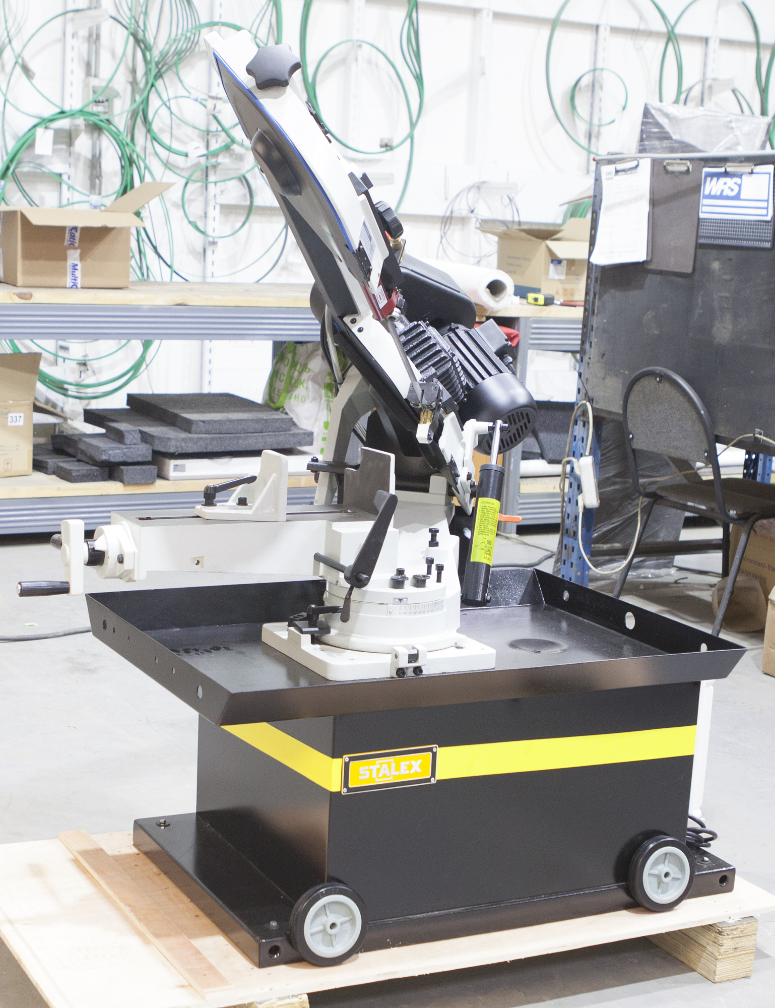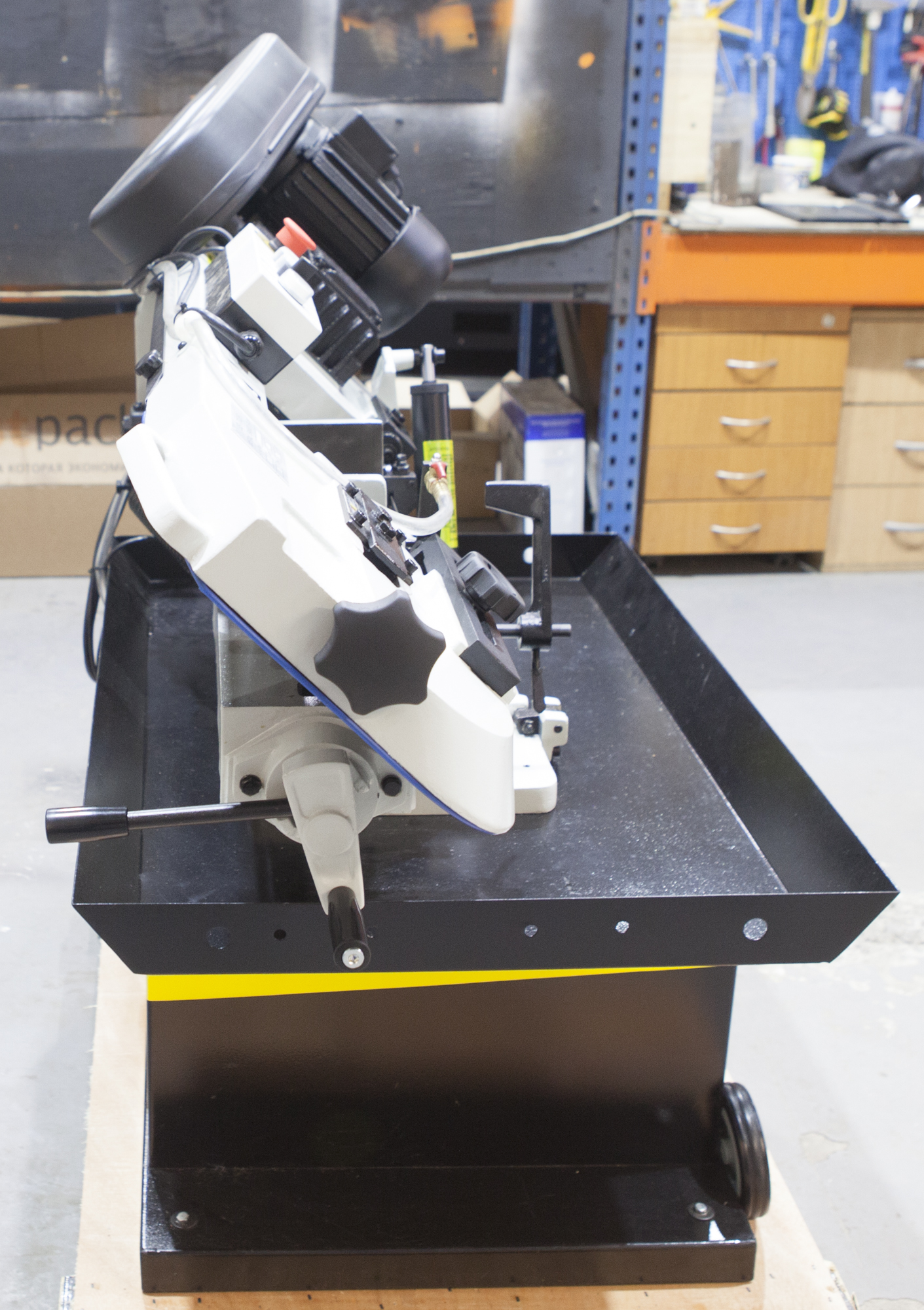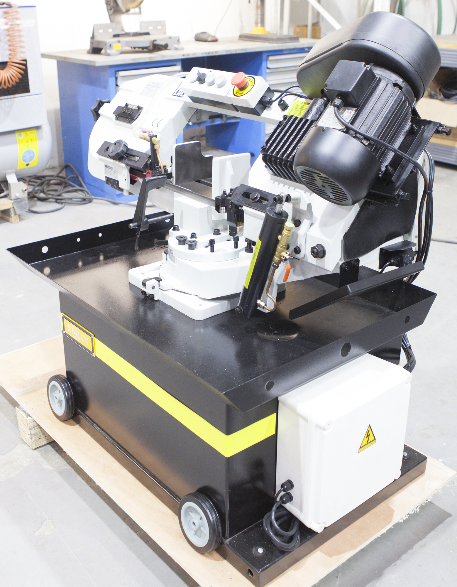Стандартная модель мобильного ленточнопильного станка, разработана для резки черных металлов и других материалов с целиковым, полым или профильным сечением. Станок позволяет делать распилы заготовок диаметром до 180 мм в полуавтоматическом режиме с ручным возвратом пильной рамы в первоначальное положение. Пила опускается под собственным весом, станок оборудован дросселируемым гидравлическим цилиндрами подач, который позволяет автоматически подстраивать скорость опускания пильной рамы в зависимости от профиля заготовки, что обеспечивает оптимальные режимы распила. Станкам не требуется подключение к источнику сжатого воздуха.
