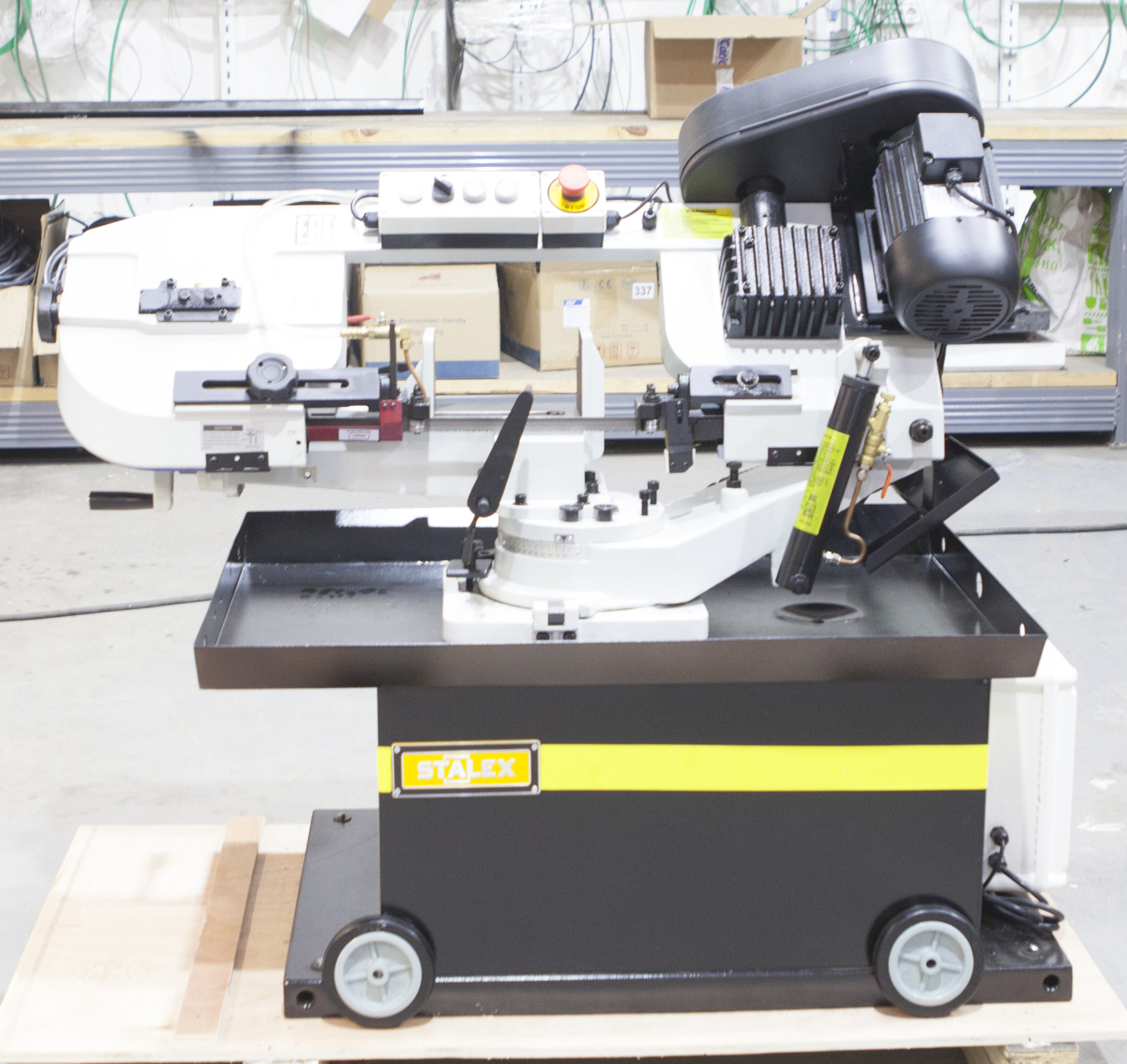Станки Stalex BS-712 имеют высоту полотна 20мм, в зависимости от комплектации поворот губок тисков или возможность поворота рамы пилы, а также привод клиноременной или зубчатый. Система СОЖ в стандартной комплектации.