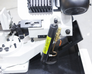 - Станция охлаждения, обеспечивающая подачу СОЖ (расположена внутри рамы) + и регулировочные краны для регулировки напора СОЖ