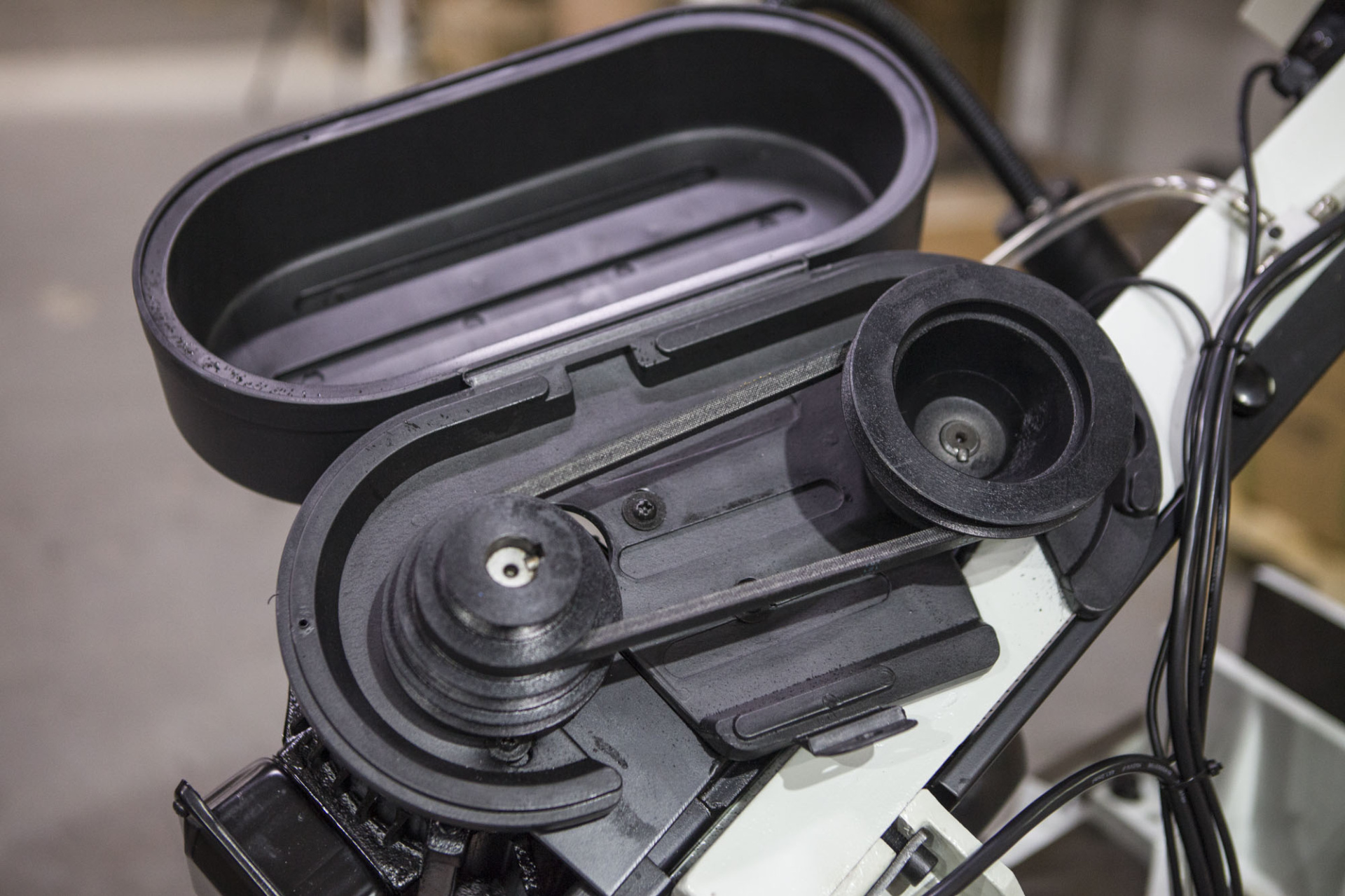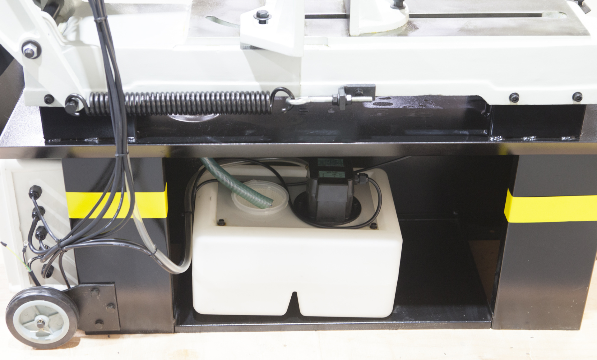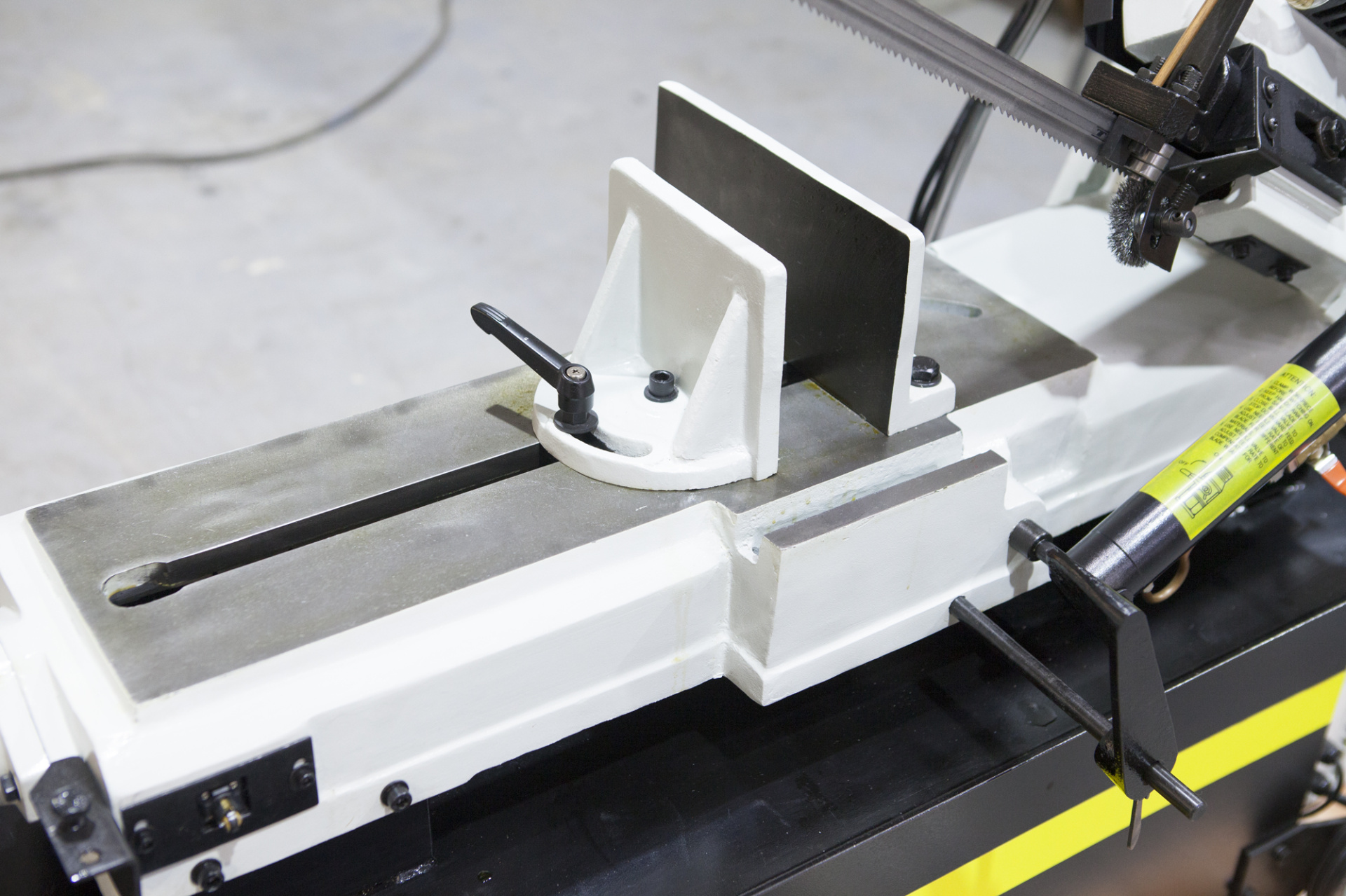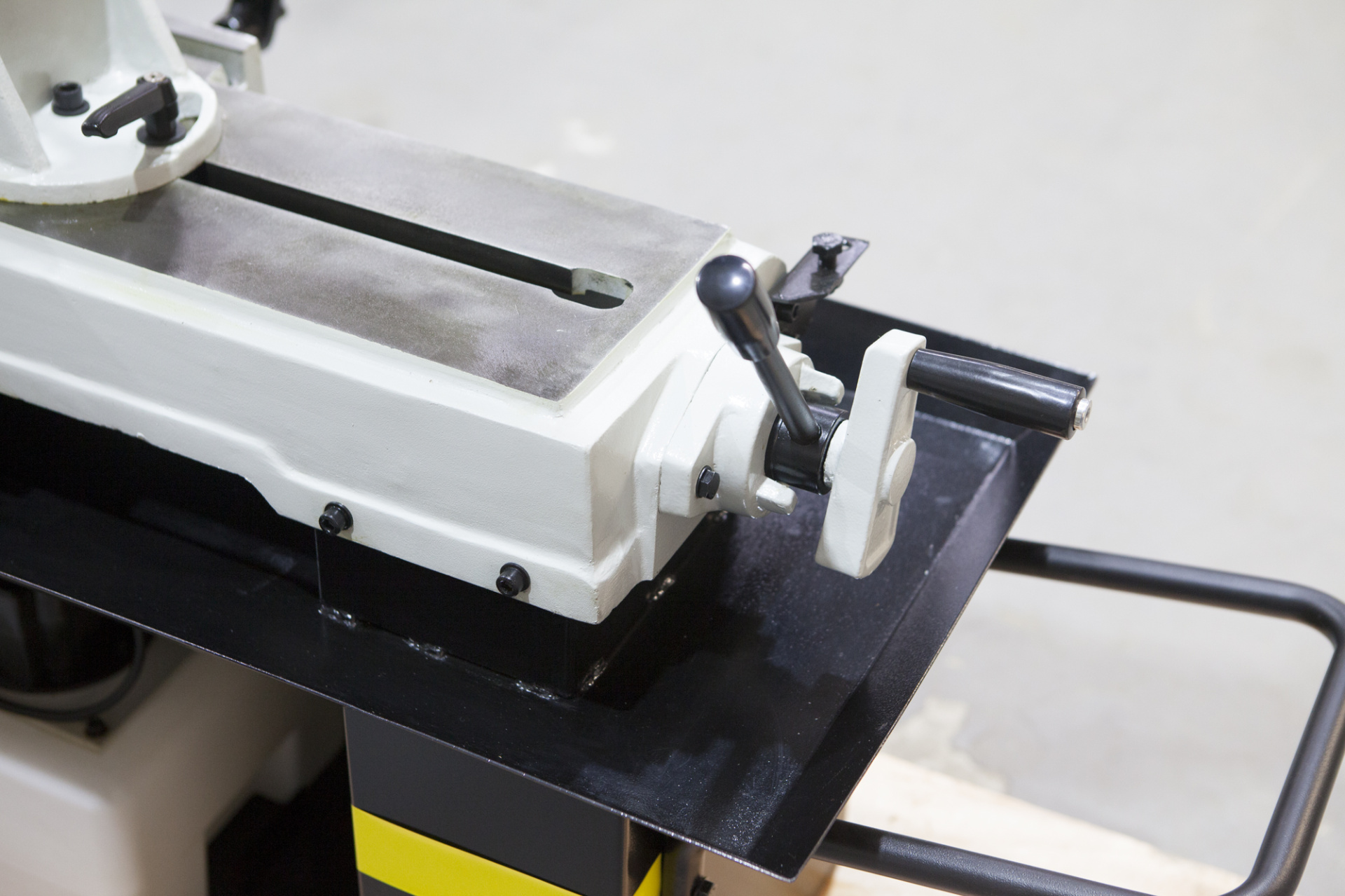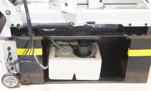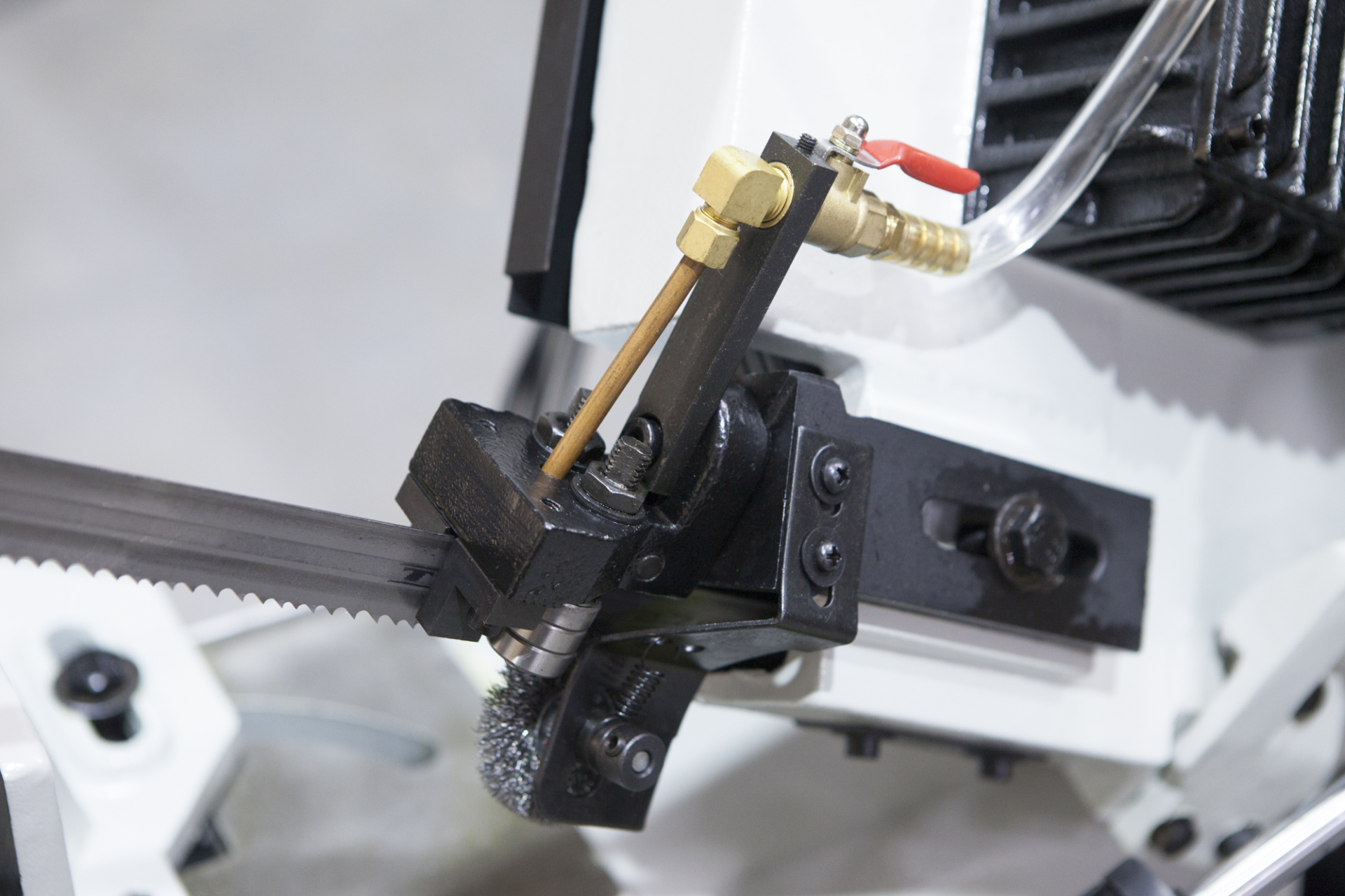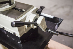 Станок Stalex BS-912B имеет поворот губок тисков, для пиления под углом необходимо изменять угол установки тисков. Зажим заготовки осуществляется тисками вручную, подача заготовки - также вручную. Мобильность станков позволяет использовать их на производстве непосредственно там, где это необходимо. Станки находят широкое применение в серийном и мелкосерийном производстве. Система СОЖ в стандартной комплектации, регулировка скорости осуществляется с помощью ступенчатого шкива (4 режима скорости).