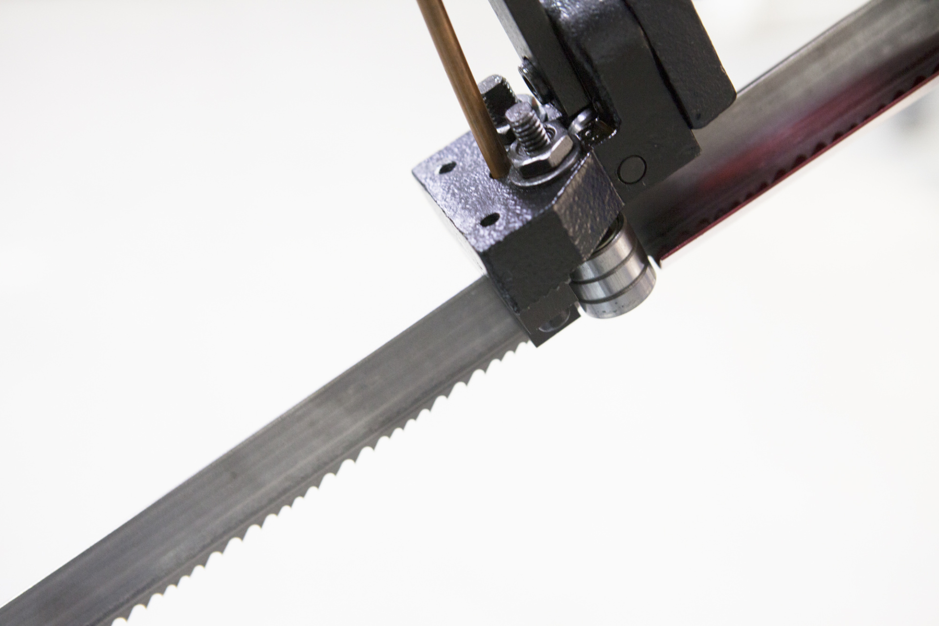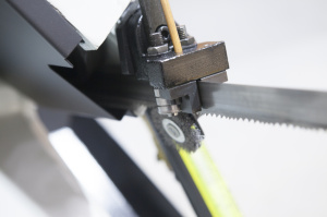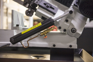 Пила опускается под собственным весом, станок оборудован дросселируемым гидравлическим цилиндрами подач, который позволяет автоматически подстраивать скорость опускания пильной рамы в зависимости от профиля заготовки, что обеспечивает оптимальные режимы распила.