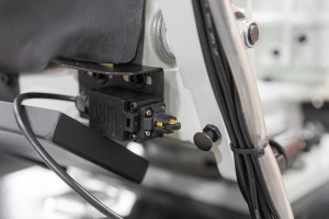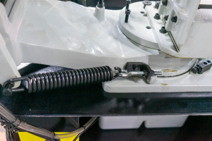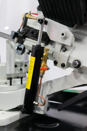 Пила опускается под собственным весом, станок оборудован дросселируемым гидравлическим цилиндрами подач, который позволяет автоматически подстраивать скорость опускания пильной рамы в зависимости от профиля заготовки, что обеспечивает оптимальные режимы распила.