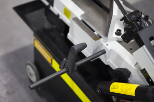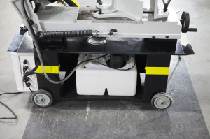 Стандартная модель мобильного ленточнопильного станка, разработана для резки черных металлов и других материалов с целиковым, полым или профильным сечением. Станок позволяет делать распилы заготовок диаметром до 180 мм в полуавтоматическом режиме с ручным возвратом пильной рамы в первоначальное положение. Пила опускается под собственным весом, станок оборудован дросселируемым гидравлическим цилиндрами подач, который позволяет автоматически подстраивать скорость опускания пильной рамы в зависимости от профиля заготовки, что обеспечивает оптимальные режимы распила. Станкам не требуется подключение к источнику сжатого воздуха.