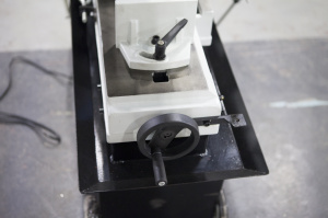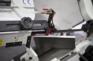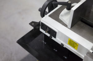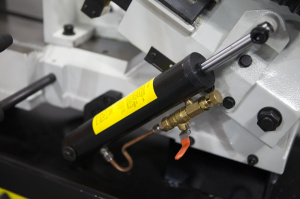 На станках с гидроразгрузкой управление и процесс резки (запуск пилы – опускание рамы – остановка пилы) происходит за счёт запуска двигателя и регулировки гидроцилиндра. Гидроцилиндр имеет переключатель вкл./выкл. гидравлической системы и плавную регулировку опускания рамы верхним маховиком на дроссельном клапане. |