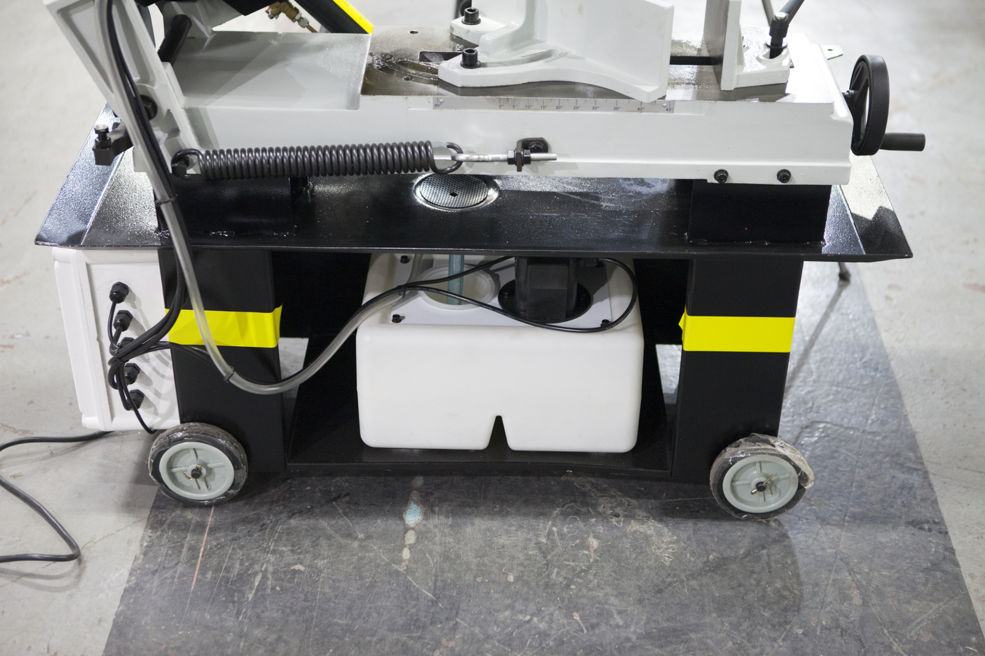 - Станция охлаждения, обеспечивающая подачу СОЖ (расположена внутри рамы) + и регулировочные краны для регулировки напора СОЖ