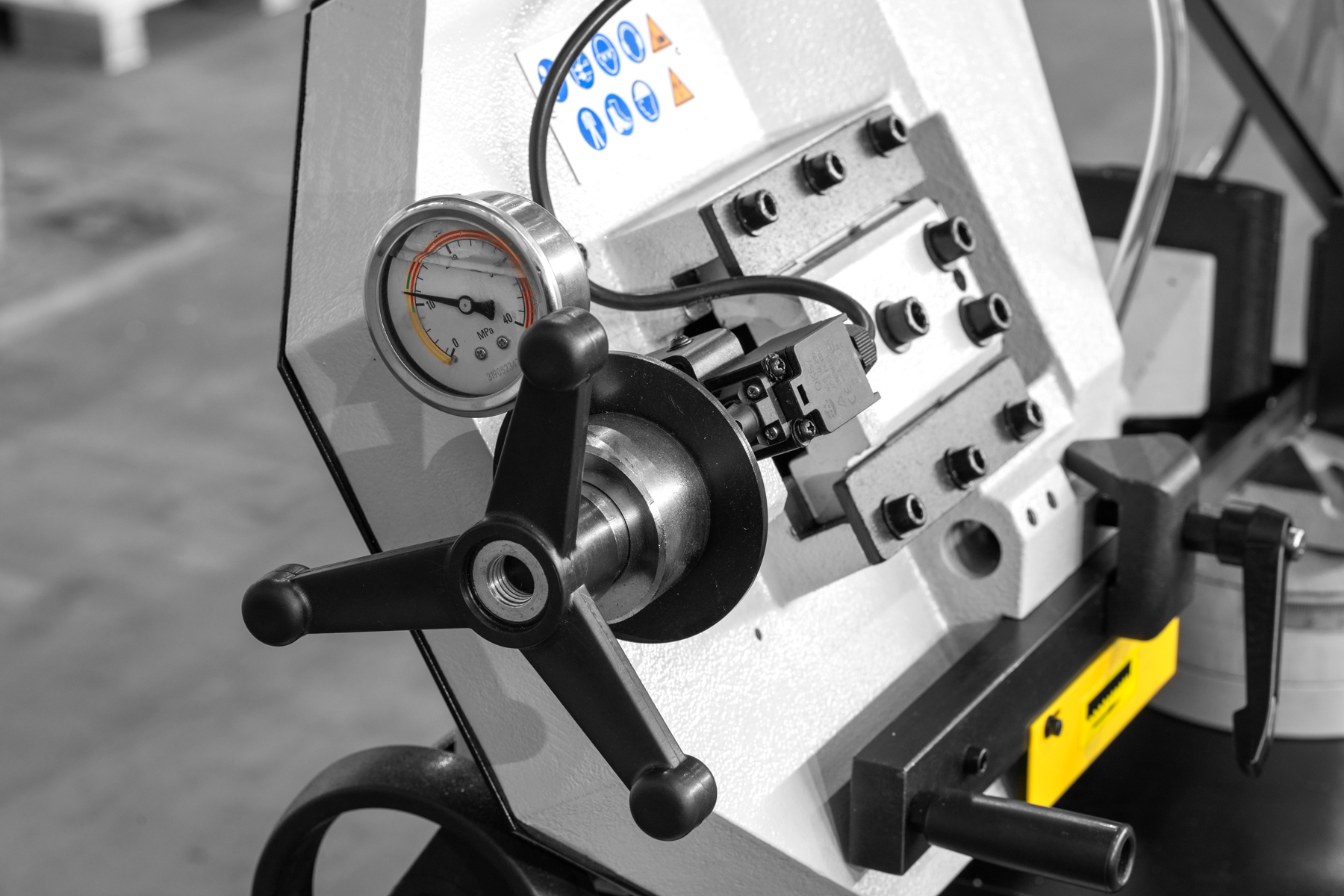 - Гидравлический цилиндр для автоматической бесступенчатой резки / плавная регулировка скорости опускания рамы (подвод и рабочий ход)