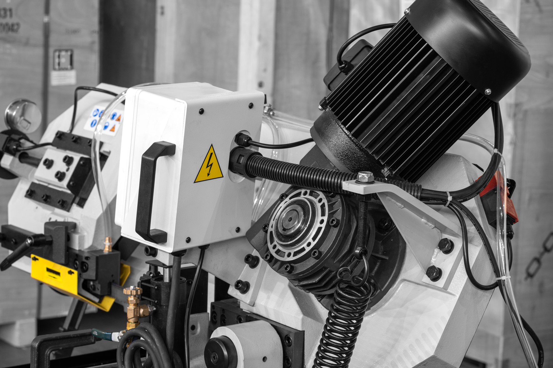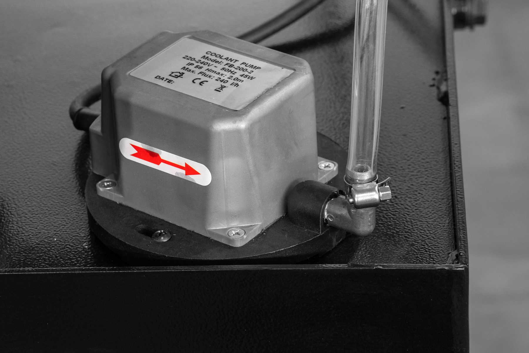 - Помпа для подачи СОЖ и регулировочные краны для регулировки напора СОЖ