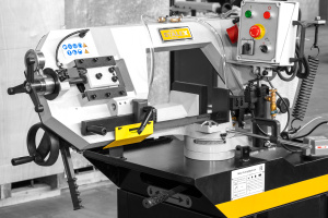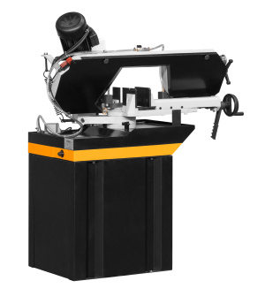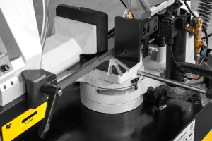 Модель имеет быстрорегулируемые тиски для резки под углом, поворачивается рама, а не заготовка. Тиски с системой быстрого отвода ускоряют процесс смены заготовки (ускоренный отвод подвижной губки происходит без вращения маховика). Зажим заготовки осуществляется тисками вручную, подача заготовки - также вручную. Наличие системы СОЖ в стандартной комплектации – позволяет добиться высокой производительности.