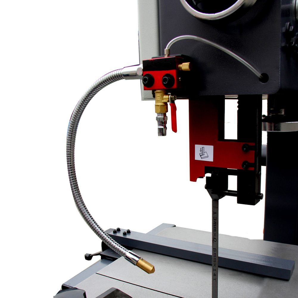 Конструкция станка имеет направляющие головки с пластинами, верхняя подвижная и нижняя неподвижная для направления полотна. Наклон рабочего стола осуществляется в обе стороны: 30° влево и 15° вправо. При работе на станке, в случае обрыва полотна конструкция позволяет произвести ремонт. Для ремонта полотна станок оснащен: