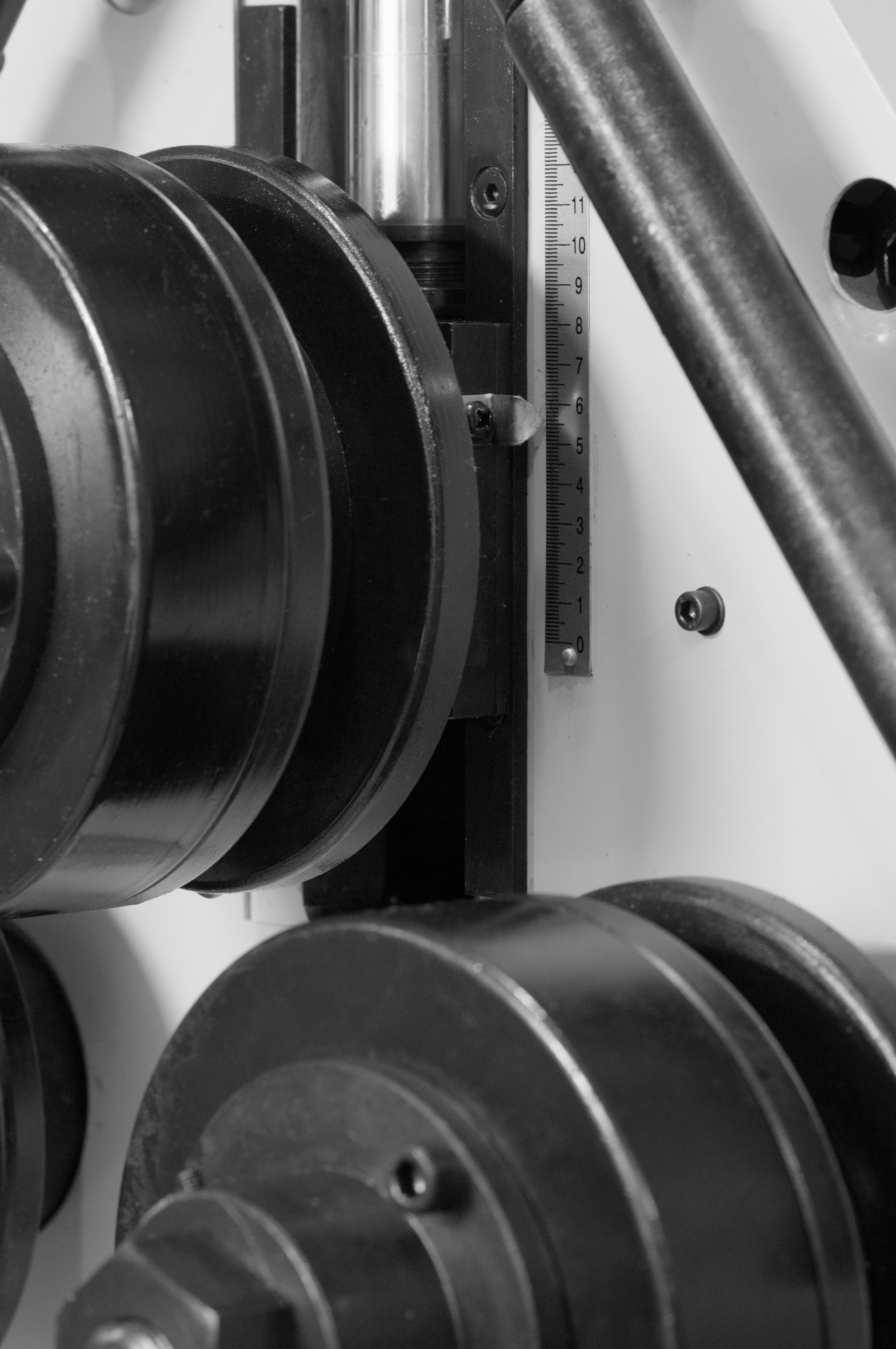 - Вдоль перемещения верхнего ролика на станке установлена шкала повторяемости;
