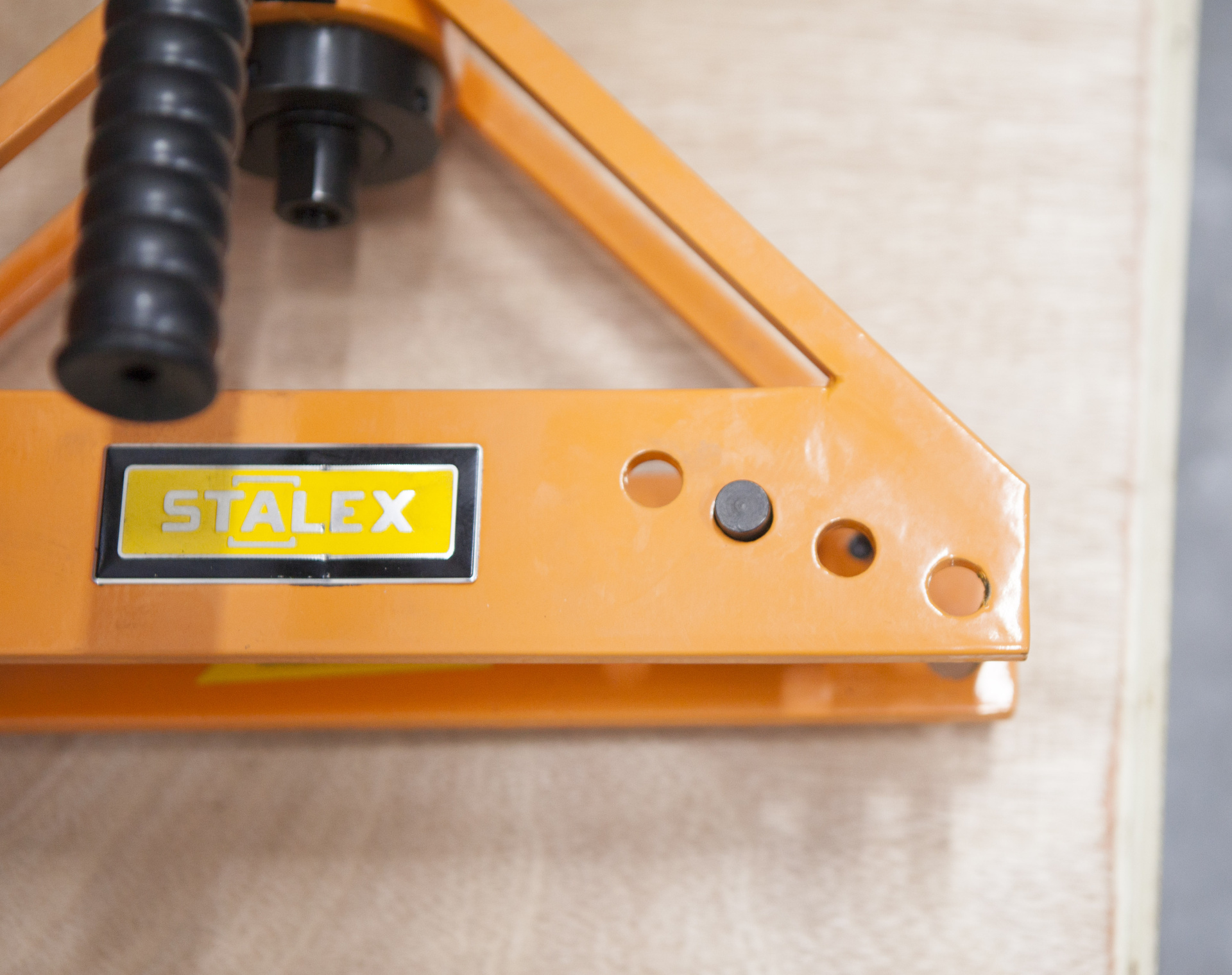 Модель Stalex MHPB-1A продавливает заготовки при помощи гидравлической направляющей, с набором сменных рабочих оправ. Помимо четырёх рабочих опор станок имеет две горизонтальные опоры, устанавливаемые в отверстия для регулировки радиуса гиба.