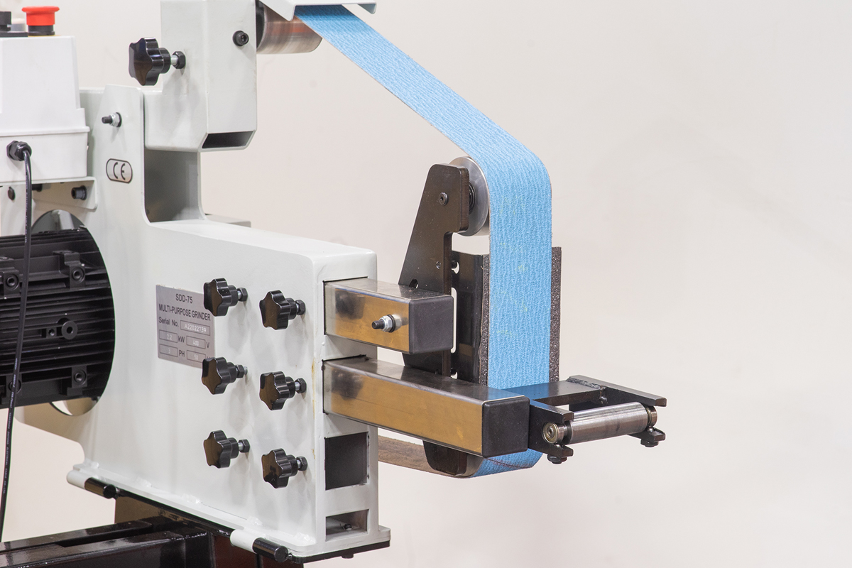Станок шлифовальный комбинированный Stalex SDD-75. Станок прост в эксплуатации, эта машина выполняет три вида шлифования только одним рабочим рычагом и одним и тем же ремнем, при необходимости ремень легко заменяется. Станок используется для торцовки, заточки, зачистки, шлифовки и полировки изделий путём обработки плоскостей и сопряжённых плоских поверхностей «бесконечными» абразивными лентами. Станок популярен и широко применяется в цехах и мастерских, предназначен для быстрой подгонки элементов при сборке. Этот станок, может опционально комплектоваться устройством для торцевания труб, с помощью которого можно в торцах труб делать закругления, для последующей сварки. Станок имеет низкий уровень вибрации.