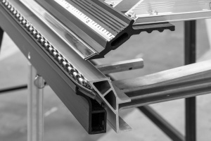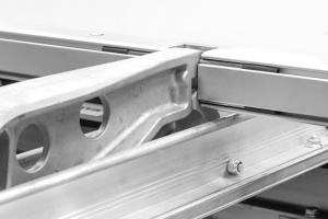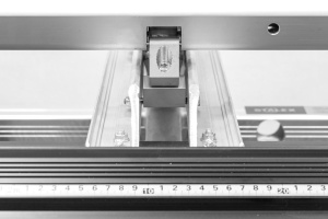 Изготовлена из усиленного алюминиевого профиля. В конструкции предусмотрен «рельс» для роликового ножа и установки угломеров. Кромка планки имеет радиус всего 2мм и дополнительно защищена от повреждения стальным уголком. |