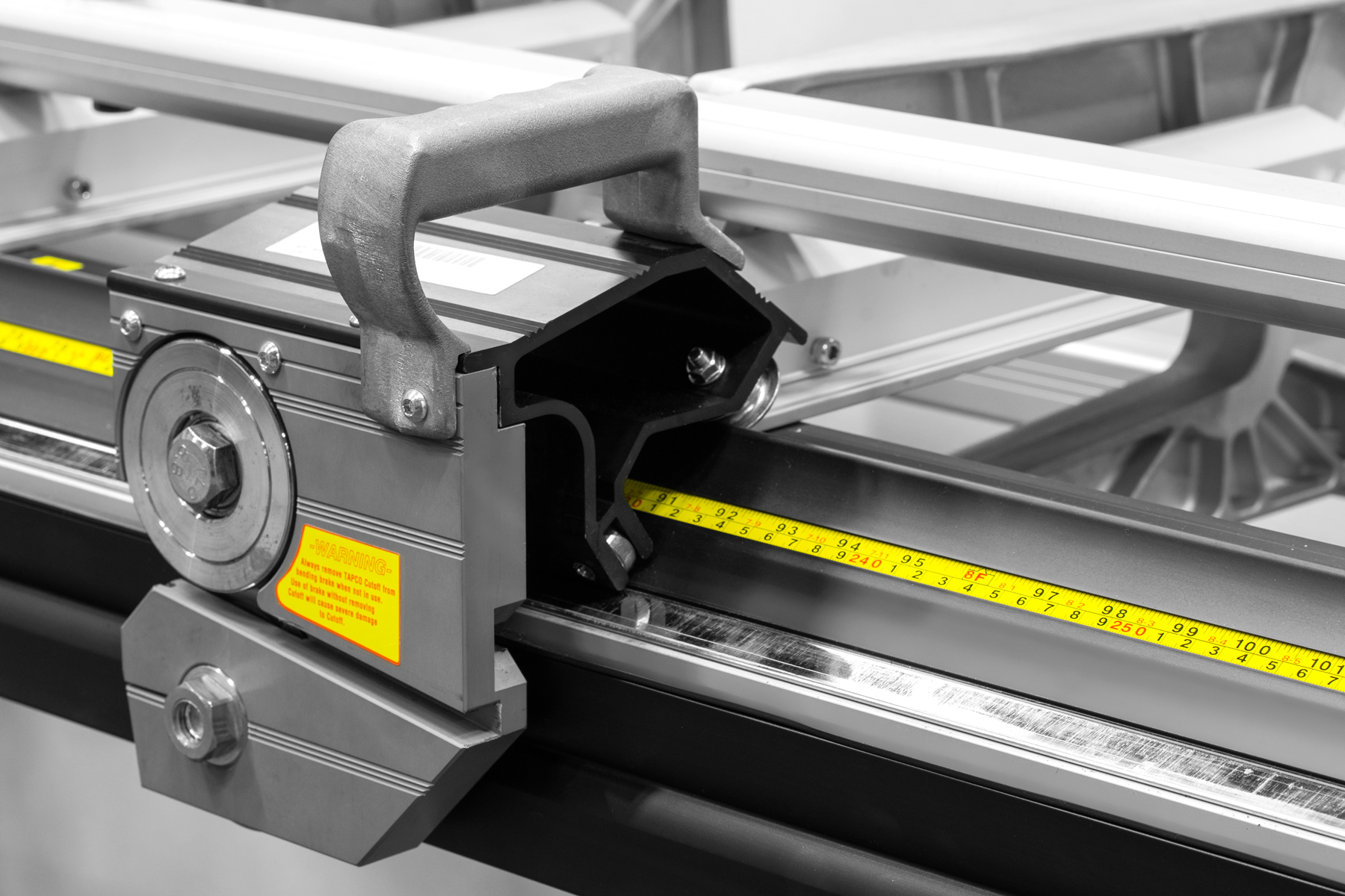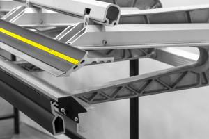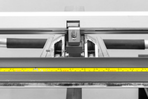Подвижная гибочная планка соединена с нижней прижимной планкой через виниловую полосу. На планке установлена виниловая вставка и ручки нижние арт. 14374R. Планка предназначена для гибки листовых металлов. |