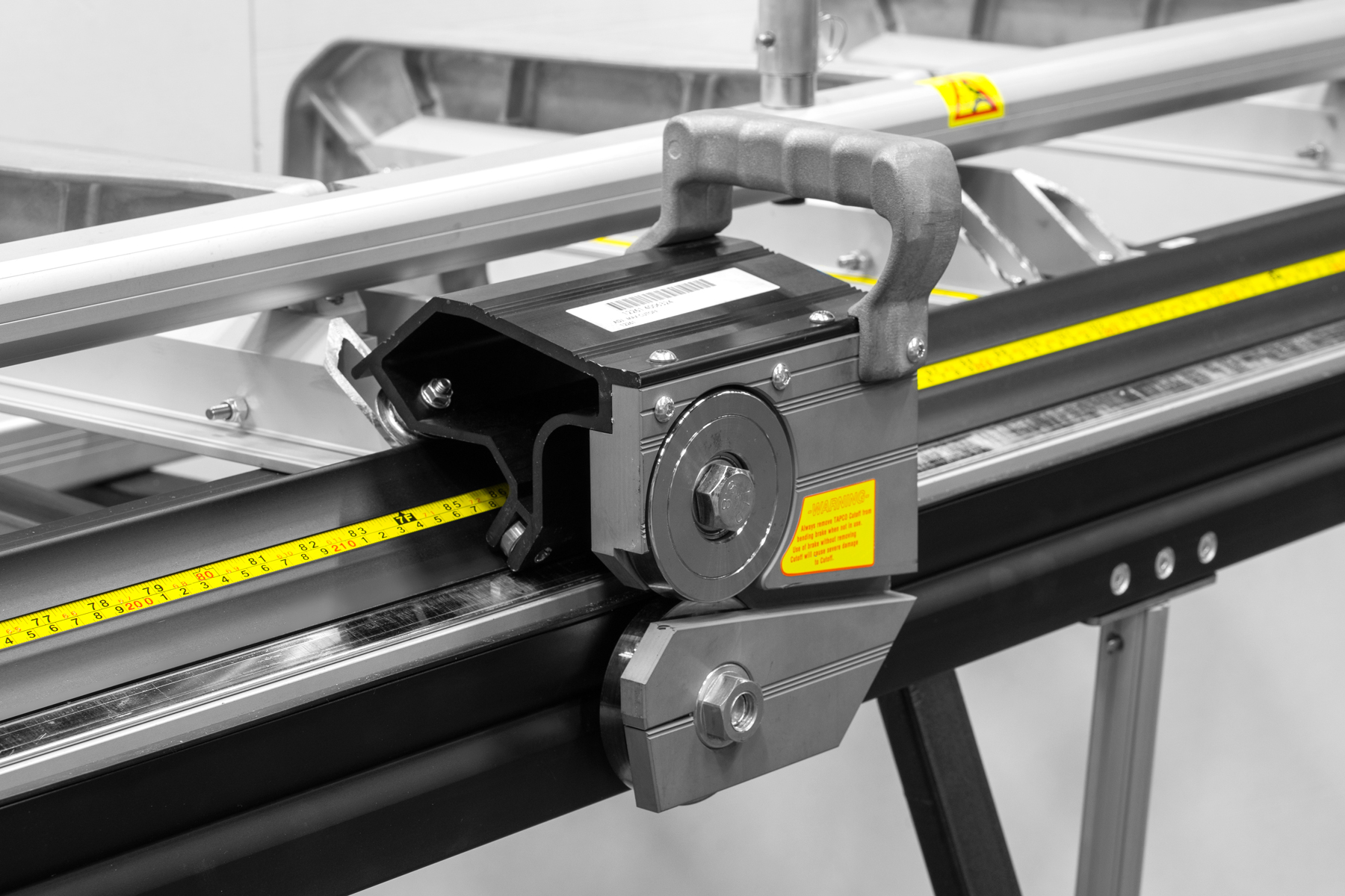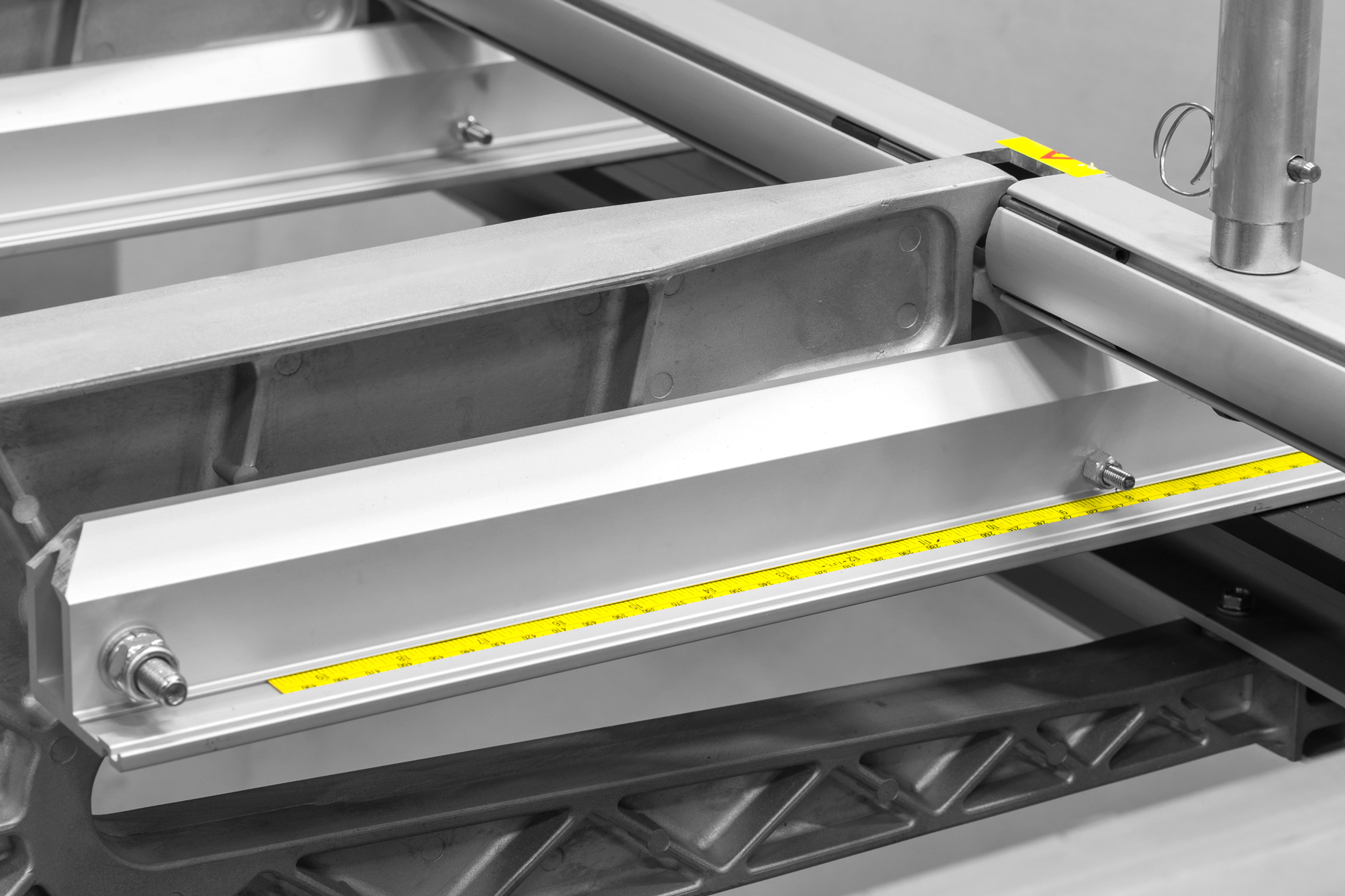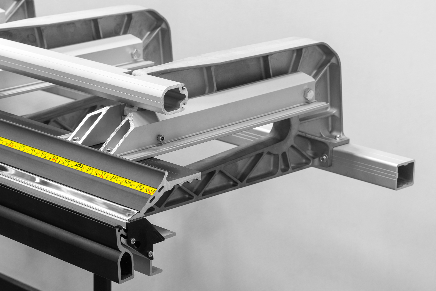 Изготовлена из усиленного алюминиевого профиля. В конструкции предусмотрен «рельс» для роликового ножа и установки угломеров. Кромка планки имеет радиус всего 2мм и дополнительно защищена от повреждения стальным уголком. |