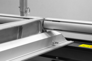 - Ещё одно отличие станка Stalex SUPERMAX – при загрузке листа в станок верхняя ручка расположена в горизонтальном положении, что позволяет осуществлять загрузку материала одному сотруднику.