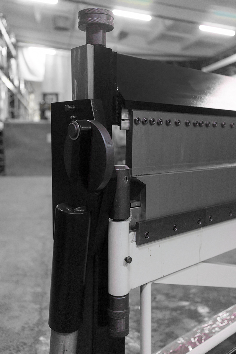 Станок оснащён регулировкой толщины листа и ограничителями угла гиба