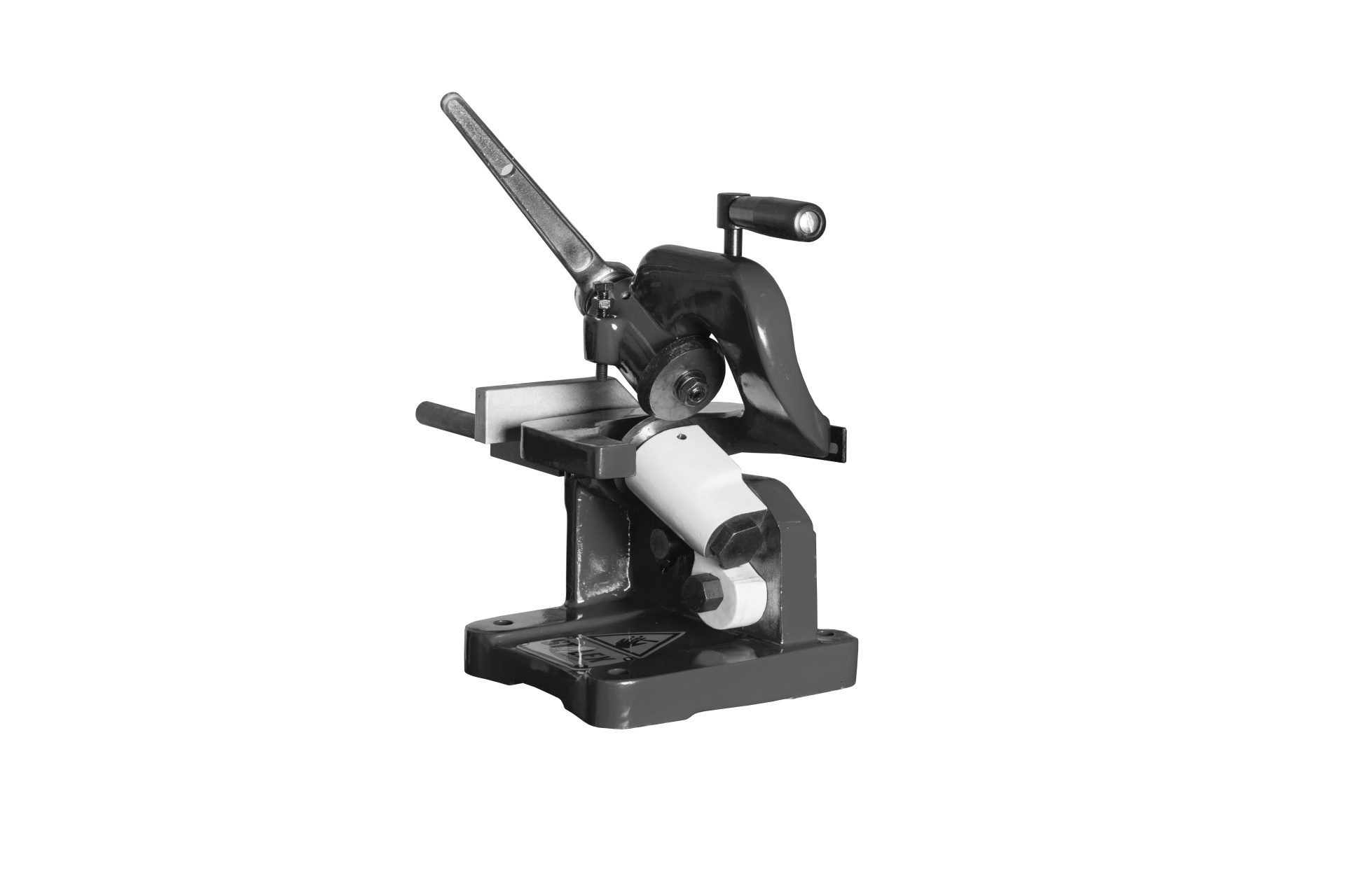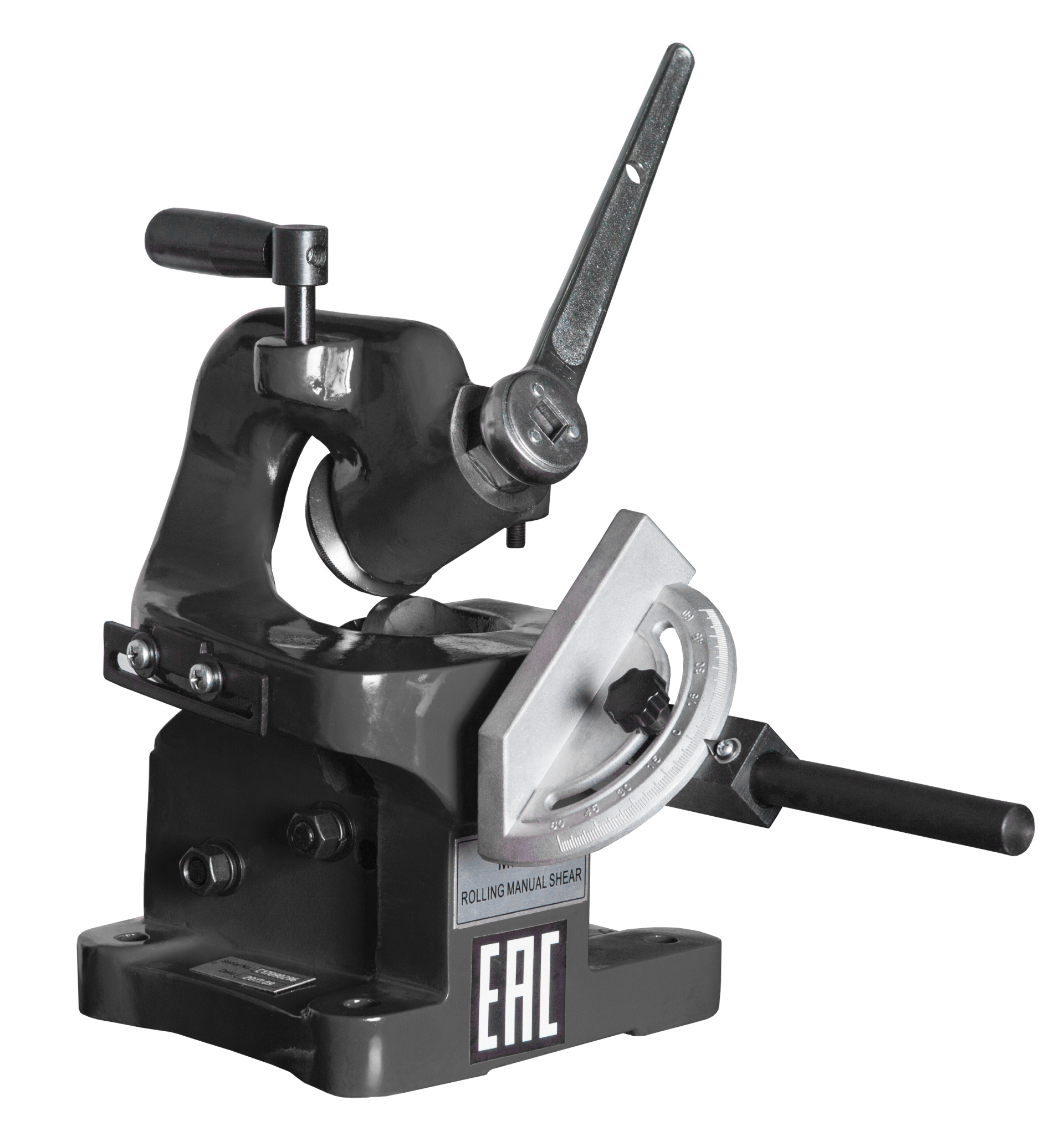 Предназначен для резки листового металла и других материалов с помощью вращения вала верхнего ножа ключом-трещоткой. Применяется при производстве доборных элементов кровли, водосточных и вентиляционных систем при выполнении криволинейных резов. Резка мягкой стали, алюминия, бронзы и мягкой нержавеющей стали с макс. толщиной до 3,0 мм (σВ <400 MРa), а также для резки листов бумаги, кожи и резины максимальной толщины до 6 мм. Может выполнять прямолинейную и криволинейную резку по любым формам (минимальный радиус разрезания 25мм). Мощное литое основание-корпус для дополнительной стабильности, в основании ножа имеются четыре отверстия для крепления. Оснащён регулируемым упором до 300мм, с градусной шкалой для выставления угла в обе стороны от 0° до ± 60°. Универсальный дисковый нож отличается простотой эксплуатации и легко регулируется.
