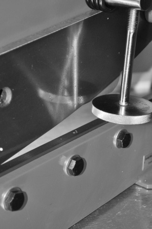 Станок способен резать круглые заготовки диаметром до 13 мм, листовая сталь толщиной до 6 мм и полосы размером до 70х6 мм. Ножницы оснащены прочным прижимом, регулируемым по высоте и высококачественными режущими ножами. Для резки круглого прутка на верхнем режущем ноже предусмотрено специальное отверстие.