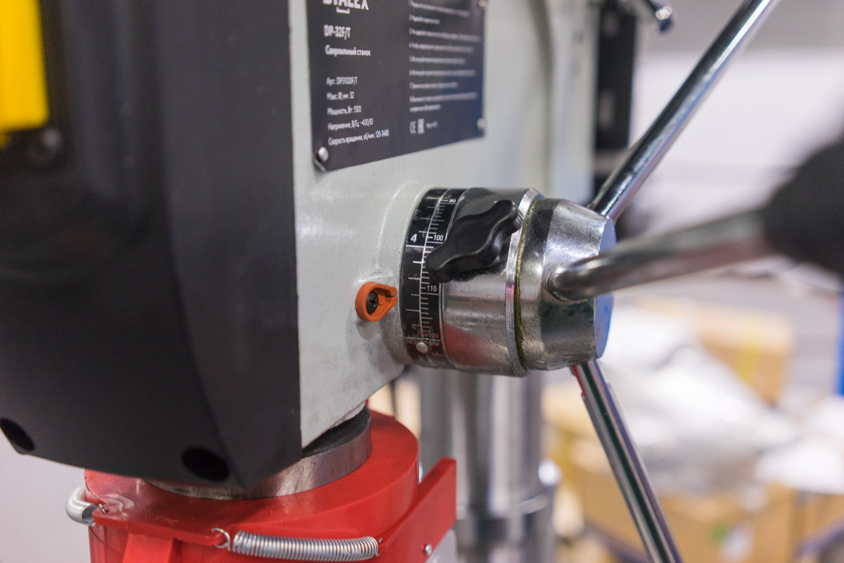 - Рабочий стол перемещается вверх/вниз при помощи зубчатой рейки
