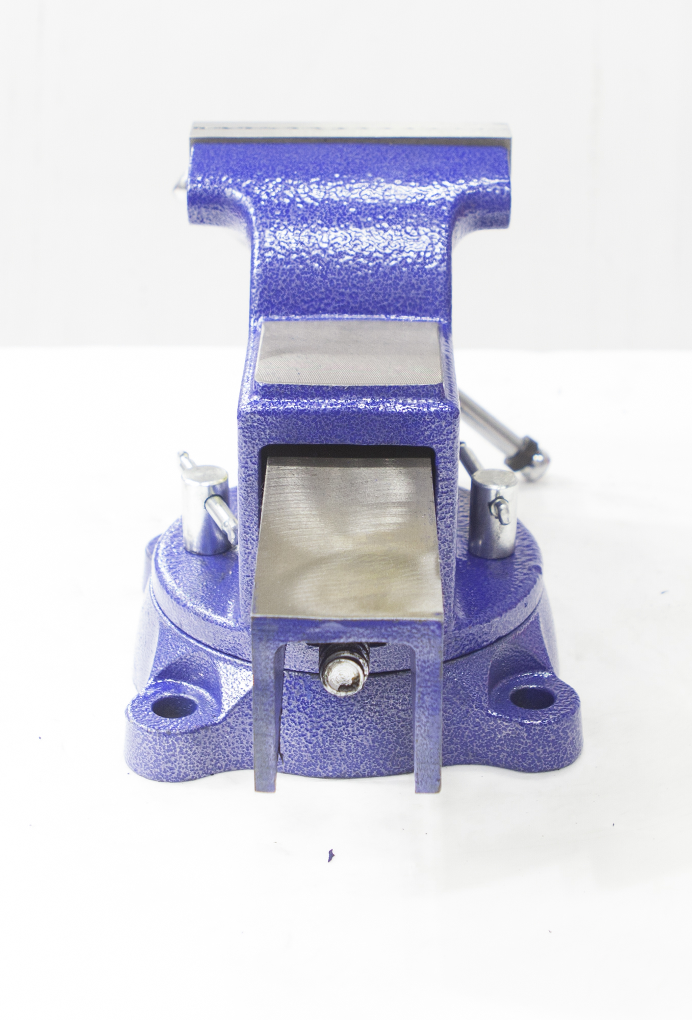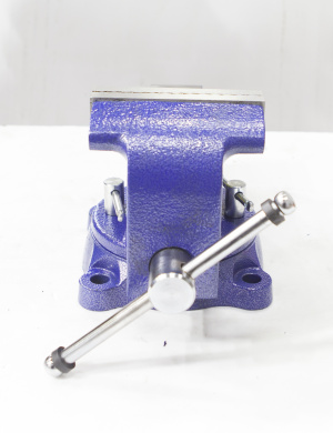 Закрытый ходовой винт тисков защищен от попадания металлической стружки и опилок. Тиски имеют возможность поворота на 360° относительно своего основания.