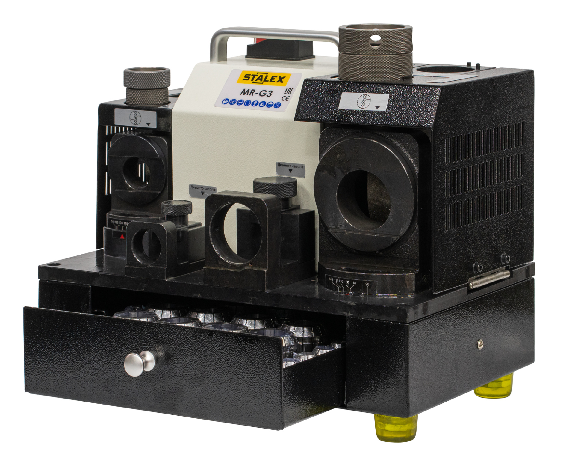 - Легкая, быстрая и качественная заточка стандартных спиральных сверл из твердых сплавов и быстрорежущей стали.